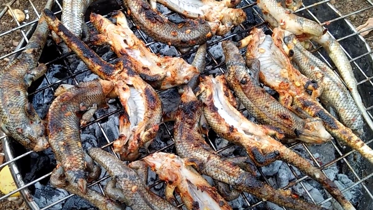 Cách chế biến Rắn mối nướng mọi